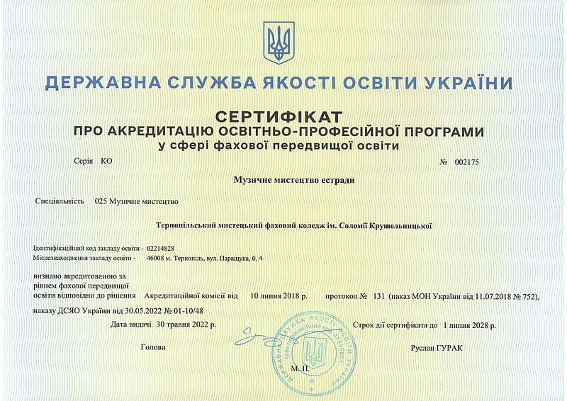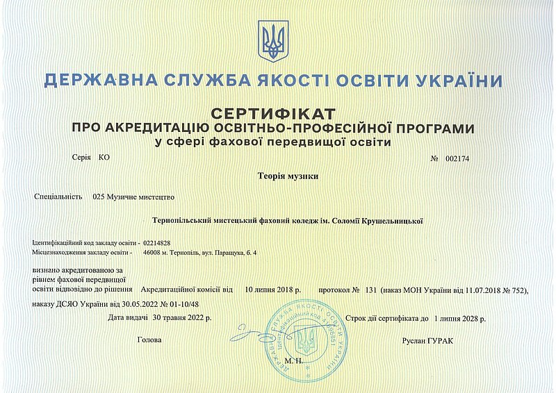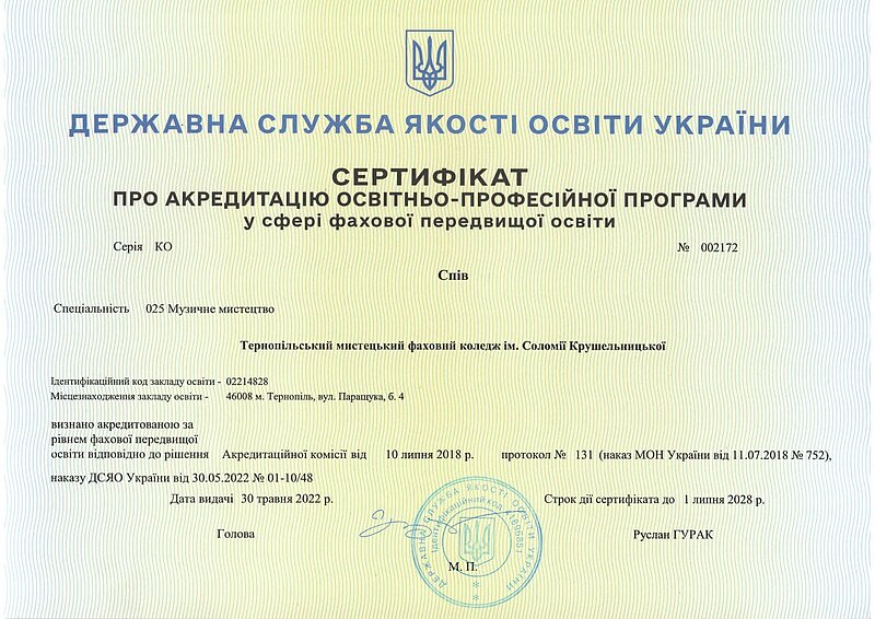 Реєстр суб'єктів освітньої діяльності (Фаховий молодший бакалавр)
