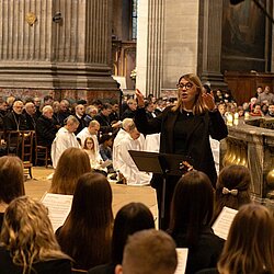 "Ми молилися, ми ділилися українськими талантами з десятками тисяч людей, які прибули на цю зустріч з усієї Європи та США і у якій брали участь представники влади Парижа, духовенство з Ватикану та різних країн світу. Ми доносили українську молитву, українську колядку, нашу незламність і бажання миру у єдності з представниками різних країн", - розповіла керівниця хору, викладачка коледжу Оксана Шуфліта.