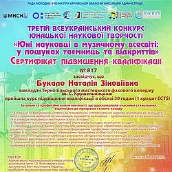 Наукова керівниця дослідження - очільниця відділу "Теорія музики" Наталія Букало- отримала сертифікат підвищення кваліфікації.