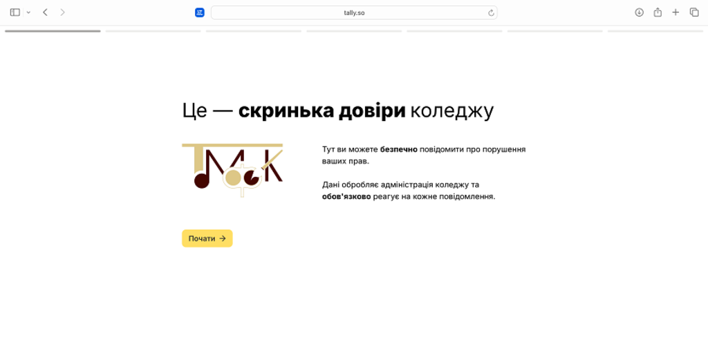 Ініціатива, розроблена та впроваджена навчально-методичним кабінетом Тернопільського мистецького фахового коледжу імені Соломії Крушельницької, є зручним інструментом для моніторингу якості освіти та безпеки освітнього середовища. Ключова особливість нової системи — можливість в одному місці подати звернення щодо найкритичніших питань.